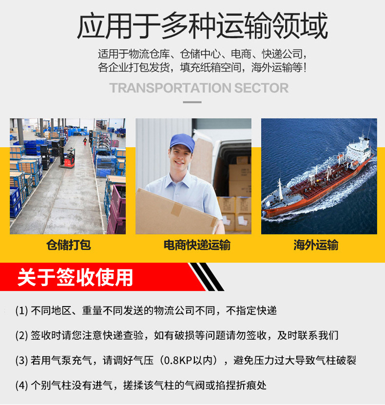 奧立包裝 大型集裝箱填充袋 貨柜充氣袋緩沖氣袋物流專用空隙填充氣泡袋,氣柱袋,這里云集了眾多的供應商,采購商,制造商。這是大型集裝箱填充袋 貨柜充氣袋緩沖氣袋物流專用空隙填充氣泡袋的詳細頁面。產地:義烏市,是否進口:否,材質:PE+PA,貨號:041,尺寸:60*80cm,加工定制:是,適用范圍:填充,品牌:謳克包裝,是否跨境出口專供貨源:否,規格:定制款,60*80cm,厚度:5絲。我們還為您精選了氣柱袋公司黃頁、行業資訊、價格行情、展會信息等,欲了解更多詳細信息,請點擊訪問!